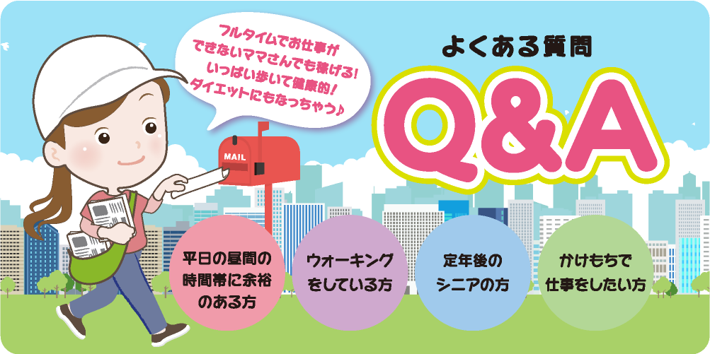 地域のお店の広告物や求人案内のチラシなどを決められた地域に配っていただくお仕事です。